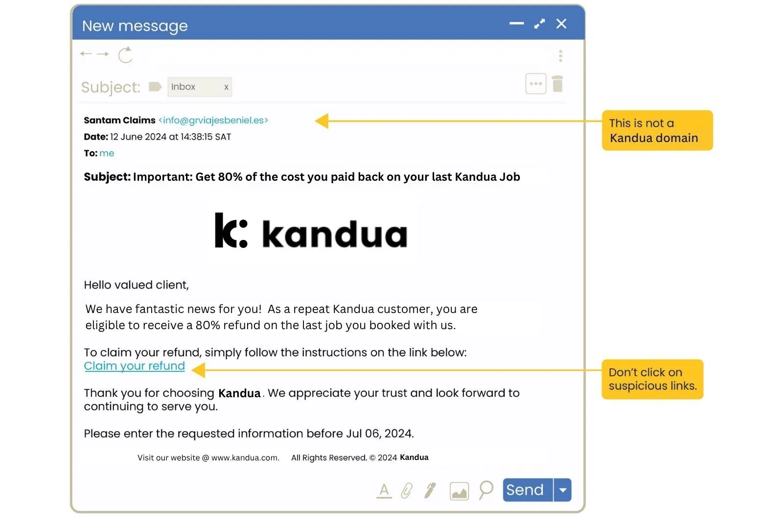 Example of an unsafe link email